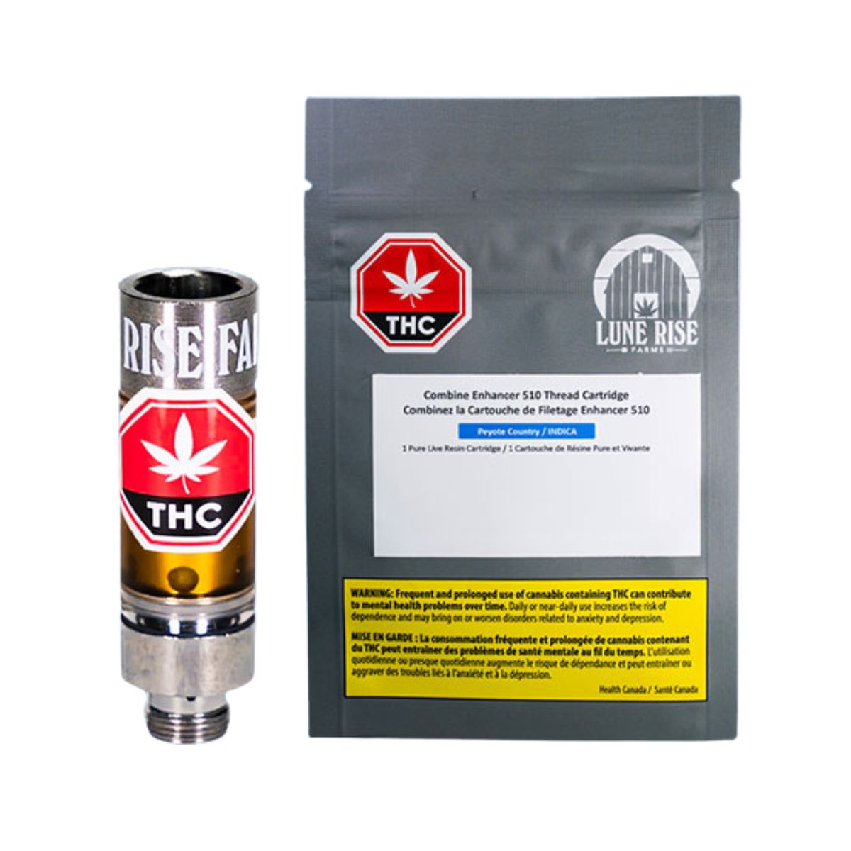 Lune Rise Farms' Pure Live Resin Combine Enhancer Cartridges are stackable 0.5g 510 threaded cartridges that can be combined with any other 510 threaded cartridge through a unique reservoir connector.